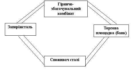 Пояснення до схеми 5.1: Унаслідок фінансової кризи «Запоріжсталь», не маючи можливості розрахуватись живими грошима за поставлену руду, виписує вексель гірничо-збагачувальному комбінату. Останній, знаючи, що у «Запоріжсталі» гроші навряд чи з’являться, реалізує з дисконтом ці векселі через торговельну площадку підприємцям-споживачам металу. Цей покупець, у свою чергу, пред’являє вексель до оплати «Запоріжсталі», яка, в силу відсутності коштів, розраховується продукцією. У підсумку споживачу метал дістається дешевше, тому що вексель було придбано зі скидкою.