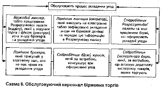 ідвідувачам надається право укладати угоди з реальним товаром від свого імені та за свої кошти. На біржах України чисельність постійних відвідувачів зростає, однак їх співвідношення з чисельністю членів бірж наближалося до загальноприйнятих норм і складало в 1999 р. близько 27 % проти 31% у 1998р. Кожна товарна біржа, розробляючи власні Правила проведення біржових торгів, передбачає функціонування, діяльність органів, які обслуговують біржові торги взагалі та процес укладення угод зокрема.
