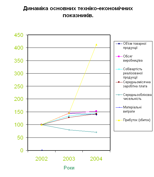 Валова собівартість виробленої продукції, звичайно, повинна була зрости у відповідності до зростання обсягів виробництва. Як результат зростання на 34,5% у 2003 та на 8% у 2004 році (на 45,3% по відношенню до 2002 року). Однак, темпи росту собівартості не випереджають темпи росту обсягів виробництва, що свідчить про зниження собівартості за рахунок зростання продуктивності праці, зменшення відрахувань до фонду зарплати в зв’язку з скороченням персоналу (зменшилась кількість оплачуваних відпусток, лікарняних і т.д.).