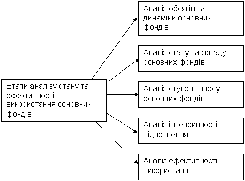 Рис. 2. Етапи аналізу стану та ефективності використання основних фондів