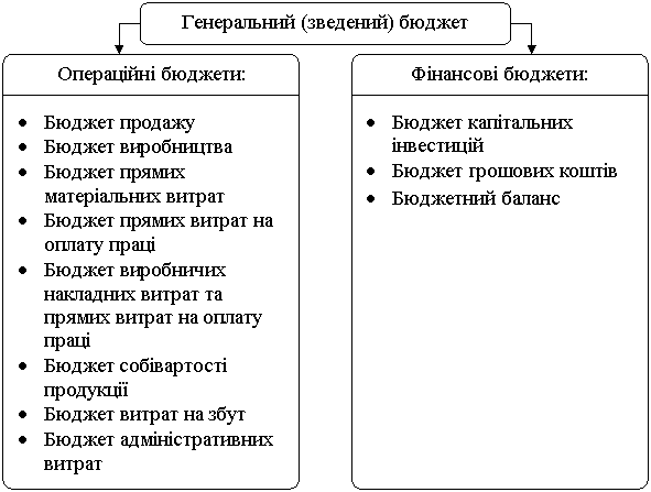 Отже бюджетування – процес планування майбутніх операцій підприємтсва та оформлення його результатів у вигляді системи бюджетів (рис. 3.1)