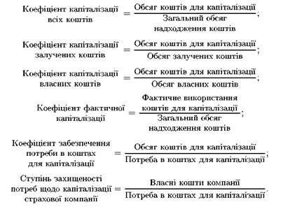 Зв'язок між розділами такий: І - II - III = IV.Процес капіталізації коштів страхової компанії аналізують, використовуючи певну систему показників: