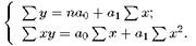 Аналітичне рівняння кореляційного зв'язку і його параметри визначають методом найменших квадратів, використовуючи систему нормальних рівнянь. Так, для прямої лінії використовують таку систему нормальних рівнянь: