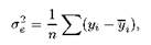 де n — кількість первинних даних; y і — індивідуальне значення спостереження; yі — значення результативної ознаки, обчисленої за рівнянням регресії.