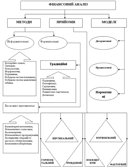Узагальнено класифікацію методів, моделей та прийомів фінансового аналізу представлено на рисунку.