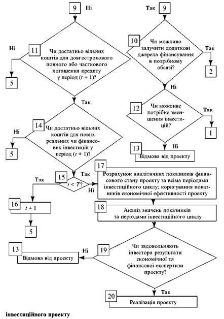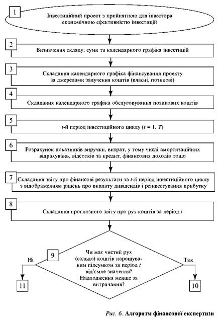 На рис. 6 подано укрупнену схему алгоритму фінансової експертизи інвестиційного проекту. Усі розрахунки виконуються за спеціально створеною "Робочою книгою" у середовищі MS Excel, що складається з таких листів.