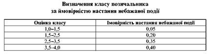 Підприємства поділяються на чотири класи залежно від імовірності настання небажаної події, тобто неповернення кредиту.