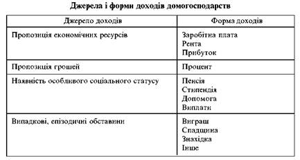 Основні джерела і форми доходів домогосподарств подано в табл. 1.1.
