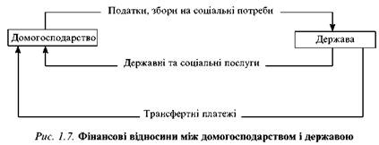 Визначальна роль у формуванні фінансів населення належить взаємодії домогосподарств і держави. Схематично фінансові відносини між ними зображено на рис. 1.7.