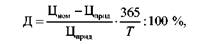 де Цном — номінальна вартість, тобто вартість, яка відшкодовується власнику при погашенні облігації; Цп ид — ціна, за яку куплено облігацію; Τ— кількість днів до погашення; 365 — кількість днів у календарному році.
