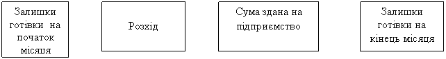 Залишок готівки на кінець місяця – 35,50+1102,50-1120,00=18.00 (грн.)