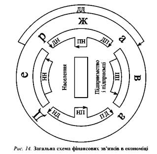 Виходячи із загальної принципової схеми фінансових взаємодій в економіці виокремимо найбільш представницькі її зв'язки і розглянемо детальніше фінансові відносини на різних рівнях. Це, зокрема, такі види зв’язків і фінансових потоків: “держава — підприємство” (ДП), “підприємство — держава” (ПД), “держава — населення” (ДН), “населення — держава” (НД), “держава —держава” (ДД), “підприємство — населення” (ПН), “населення —підприємство” (НП), “підприємство — підприємство” (ПП), “населення —населення” (НН).
