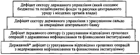Отже, у сучасній західній теорії і практиці державних фінансів поняття «дефіцит» виходить за межі власне бюджету. Бюджет (насамперед центральний), будучи провідним економічним інструментом реалізації державної політики, одночасно опиняється в контексті загального фінансового стану всього грошового господарства державних органів влади, за допомогою всіх фінансових фондів якого вони реалізують свої державні та політичні функції.