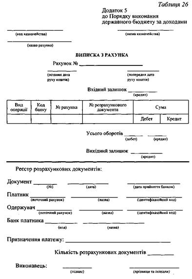 На початку наступного операційного дня, не пізніше 9-ї години ранку, за результатами обробки інформації формуються виписки з аналітичних рахунків (табл. 26), відкритих за балансовими рахунками 3111, 3121, 3131, 3311, 3411, 3412, у вигляді електронного реєстру розрахункових документів та паперові копії зазначених відомостей за підписом керівника органу Державного казначейства із відбитком печатки. До виписок з аналітичних рахунків 3-го класу додається реєстр розрахункових документів з повним переліком реквізитів.