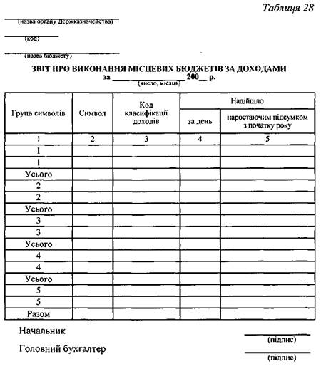 • звіти про виконання Державного та місцевих бюджетів за доходами в розрізі відділень за видами надходжень (табл. 27 та 28);