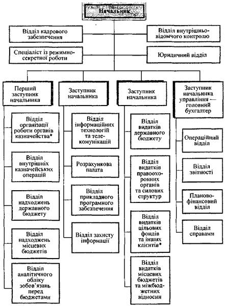 Рис. 11. Типова структура управління Державного казначейства в Автономній Республіці Крим, областях, містах Києві та Севастополі