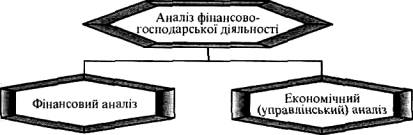 У сучасних умовах реформування бухгалтерського обліку аналіз фінансово-господарської діяльності поділяється на фінансовий та управлінський (рис. 1.1).