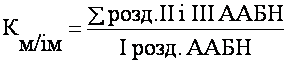Для збереження мінімальної фінансової стабільності підприємства коефіцієнт співвідношення залучених та власних коштів повинен бути обмеженим значеннями відношення мобільних коштів до вартості іммобілізованих. Цей показник називається коефіцієнтом співвідношення мобільних та іммобілізованих коштів і розраховується за формулою: