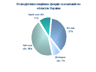 На кінець 1999 року в Україні діяльність зі спільного інвестування здійснювали 160 інвестиційних фондів та 128 взаємних фондів інвестиційних компаній, близько 63% загальної кількості яких зосереджені у Київській, Харківській та Донецькій областях.