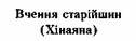 Вчення старійшин (хінаяиа або тхеравада) - пай-раїшіша форма буддизму, свого роду релігія без бога, місце якого займає загальний моральний закон - Дхарма (або Дхамма). Повністю поділяючи ідею буддизму про восьмиступепевий благородний шлях звільнення від страждань, учення стверджує, що кожна людина повинна сама, без сторонньої допомоги, без сподівань па божественне милосердя, лише дотримуючись шляху, що вказаний Буддою, і віруючи в моральний закон, досягти власного звільнення. Такий шлях надзвичайно тяжкий і під силу лише небагатьом обраним.