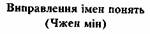 Результатом пізнання і самопізнання стала концепція Конфуція виправлення імен понять ( Чжен мін), що висуває вимогу адекватності між словом і справою, реальним станом речей, поведінкою індивідів та їх етико-ритуальним статусом, відображеним принципом лі. Концепція виправлення імен Конфуція є плід осмислення соціально-економічних змін, що привели до дестабілізації китайського суспільства. Не випадково Конфуцій у «Лунь юй» підкреслював: коли імена неправильні - судження невідповідні; коли судження невідповідні - справи не вирішуються. Так, родова знать втрачала титули і вплив, сановники-інтелектуали усувалися від управління країною, порушувалися ритуальні правила поведінки верхів стосовно низів, вищими шарами суспільства забувалися, нехтувалися традиції давньої культури - основи стабільності китайської цивілізації. У такій ситуації Конфуцій закликав подолати себе і повернутися до мудрого способу життя давніх, зафіксованого у ритуальній благопристойності (лі), канонічних писемних пам'ятниках давньої культури, у титулах, рангах і посадах (мін), тобто до всього, що ще залишалося в іменах, але вже зникало з реального життя.