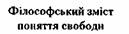Свобода - самовизначення духа, свобода волі, здібність діяти у згоді з самим собою і не визначатися зовнішніми обставинами. Свобода особистості - це і питання про свободу волі, і про вибір, і про взаємозв'язок різних компонентів структури особистості: вольового, раціонального, ціннісного. Свобода також тісно зв'язана з проблемою відповідальності. Тривалий період за певних умов у вітчизняній філософії панувала точка зору, що свобода є усвідомленою необхідністю. Джерела ідей йдуть до філософських концепцій свободи Спінози, Гольбаха, Фейєрбаха, Маркса. Свобода людини подавалася як чітко вписана в систему зовнішнього соціального і природного визначення, де особа мала лише право усвідомити необхідність і діяти у її межах. Адже саме свобода за внутрішньою суттю тільки й може надати можливість людині бути і залишатися самою собою і не підкорятися обставинам. У зв'язку з цим треба розглянути найбільш концептуальні філософські теорії свободи особи. Такими є концепції Іммануїла Канта і Миколи Бердяєва.