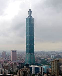 | 1. Тайпей, Тайвань (Taipei – 508 м, 101поверх, 2004 рік) Найвища будівля світу з 61 ліфтом обійшлася в $1,8 млрд. Проект розробляла компанія C.Y. Lee & Partners. У споруді розташований бізнес-центр, спортивний комплекс, бібліотека, телекомунікаційні установки. Панелі цього хмарочоса можуть витримати пориви вітру до 300 км/год. Вже у 2009 році найвищою спорудою може стати вежа Burj Dubai, що нині сягає 600 м, а після закінчення будівництва може вирости до 900 м. |