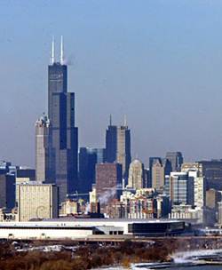 | 4. Сірз, США (Sears Tower – 442 м, 108 поверхів, 1974 рік) Будівля, спроектована архітектором Брюсом Грехемом (Bruce Graham), була найвищою в США протягом 30 років. Закінчене у 1974 році будівництво коштувало $150 млн. Споруда, що нині є офісним центром, має 104 ліфти. |