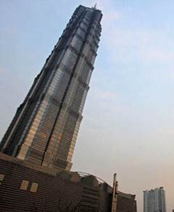| 5. Цзиньмао, Китай (Jinmao Building – 421 м, 88 поверхів, 1999 рік) У спроектованому фірмою Skidmore, Owings & Merrill хмарочосі з 61 ліфтом містяться ресторани, бари, данс-поли, конференц-зали, театр, бізнес-центр та обсерваторія. Споруда може витримувати тайфунні вітри. У 2008 році найвищою спорудою Китаю замість башти Цзиньмао стане Шанхайський фінансовий центр (Shanghai World Financial Center) заввишки 492 м. |