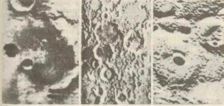 Мал. Порівняння кратерів (зліва направо) на Марсі, Місяці й Меркурії.