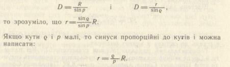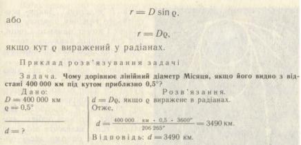 Знаючи відстань D до світила й вимірявши його кутовий радіус g можна обчислити його лінійний радіус r: