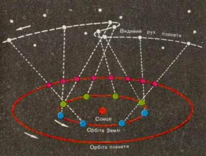 Коперник відкинув догматичне твердження про нерухомість Землі, яке століттями володіло розумом людей. Поставивши Землю серед рядових планет, він показав, що вона, займаючи третє місце від Сонця, нарівні з усіма іншими планетами рухається в просторі навколо Сонця і, крім того, обертається навколо своєї осі. Коперник сміливо доводив, що саме обертанням Землі та її обертанням навколо Сонця можна правильно пояснити відомі на той час небесні явища й петлеподібний рух планет (див. мал. 2).
