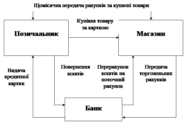 Доходи за цей кредит банки отримують із процентів, що стягуються з торгівельних підприємств за оплату торгівельних рахунків, процентної суми за кредит і плати за картку.