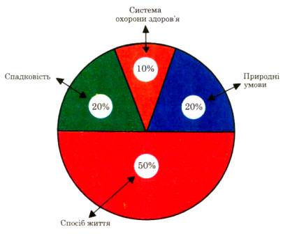 До іншої групи факторів (20%) належить генетичний фактор (спадковість). Відомо, що у батьків, які ведуть здоровий спосіб життя, є всі передумови для народження здорових дітей. Також доведено, що передумови негативної спадковості можна частково