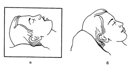 Мал. 5. Положення голови під час сну (а - неправильне, б- правильне)