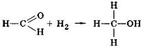 Реакції приєднання можливі внаслідок розриву подвійного зв'язку карбонільної групи. Приєднання водню, що відбувається при пропусканні суміші формальдегіду і водню над нагрітим каталізатором — порошком нікелю, приводить до відновлення альдегіду у спирт: