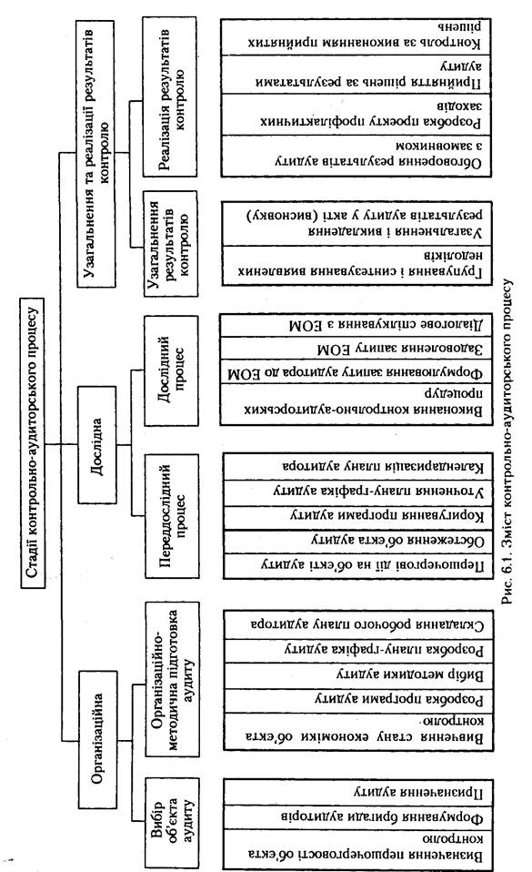 Принципову схему змісту контрольно-аудиторського процесу подано на рис. 1.