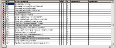 По-перше, розглянемо налагодження робочого плану рахунків. Для обліку доходів та фінансових результатів використовуються рахунки 7 класу. Основним рахунком є рахунок 70 – “Доходи від реалізації”, який має чотири субрахунки: