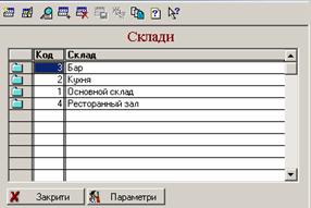 Розглянемо налагодження основних довідників, які містять об’єкти аналітичного обліку. Специфічним для програми є те, що довідник “Склади” містить не оптові та роздрібні склади, а такі специфічні для громадського харчування об’єкти, як: