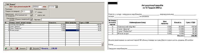 Розглянемо, якими документами оформлюються операції, пов’язані з продажем продукції та товарів в громадському харчування і яким чином вони реалізовані в конфігурації “Форт: Шинок”.
