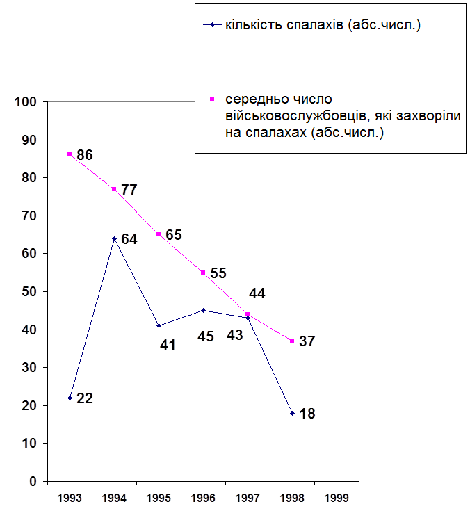 епідемічних спалахів і середнього числа військовослужбовців,