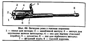 Затворна рама з газовим поршнем (мал. ) служить для приведення в дію затвора та ударно-спускового механізму.