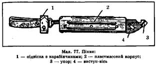 Піхви складаються з підвіски з карабінчи-ками, пластмасового корпусу, упору, виступу-осі.