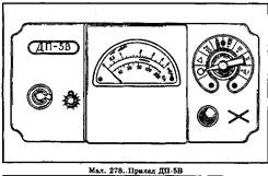 призначений для вимірювання рівнів гамма-радіації і радіоактивної зараженості різноманітних предметів гамма-випромінюванням. Передню панель зображено на малюнку 278. Потужність експозиційної дози гамма-випромінювання визначається у мілірентгенах (або рентгенах) на 1 год для тієї точки простору, де знаходиться блок детектування приладу. Крім того, приладом ДП-5В можна виміряти і рівень бета-випромінювання.