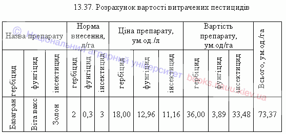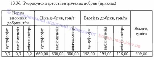 13.36. Розрахунок вартості витрачених добрив (приклад)