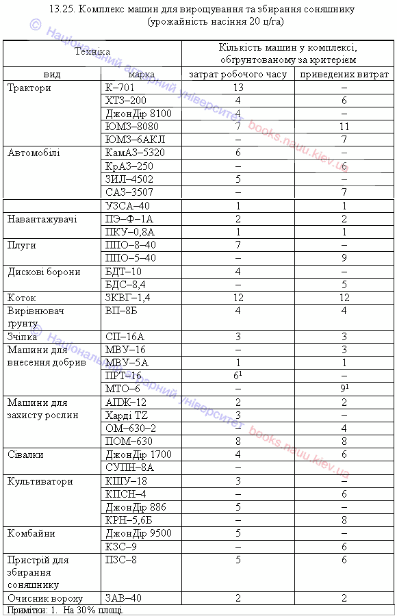 13.25. Комплекс машин для вирощування та збирання соняшнику (урожайність насіння 20 ц/га)