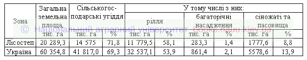 1.14. Кількість землевласників і землекористувачів за видами сільськогосподарських підприємств лісостепу у 2001 р. Вона істотно різниться у межах адміністративних областей. Найбільше їх (сільськогосподарських підприємств) з різними формами власності зосереджено в Тернопільській, Київській і Вінницькій областях (відповідно 1649, 1209 і 1194). Як видно з даних таблиці, найпоширенішою організаційно–правовою формою господарювання в зоні Лісостепу є сільськогосподарські товариства. Потрібно відзначити, що як у зоні, так і в Україні у цілому на сучасному етапі практично не існує організаційної форми господарювання, модель якої можна було б прийняти за еталон товарного виробництва сільськогосподарської продукції. Щодо ресурсного природного потенціалу агропромислового комплексу Лісостепу, то він за своєю кількістю та якістю є достатнім для того, щоб за певних умов докорінно змінити кризову економічну ситуацію в аграрному виробництві й розв'язати проблему зростання ефективності його галузей. Але внаслідок високої розораності сільськогосподарських угідь (83,9%) порушилося екологічно допустиме співвідношення ріллі, природних кормових угідь, лісових і водних ресурсів, посилилася деградація ґрунтів, істотно знизилася їхня родючість, збільшилися площі кислих, засолених і солонцюватих ґрунтів, значних масштабів набула ерозія орних земель. Земельні ресурси є насамперед матеріальною основою виробництва рослинницької продукції. Про ефективність використання сільськогосподарських угідь в областях Лісостепу свідчать дані наведені у таблиці 1.15. Слід зазначити, що виробництво валової продукції з розрахунку на 1 га сільськогосподарських угідь у Лісостепу перевищує аналогічний показник в цілому по Україні. Це стосується як усієї продукції сільського господарства, так і рослинницької зокрема. Аналіз даних у межах областей лісостепової зони показує, що найінтенсивніше використовуються земельні ресурси в Чернівецькій області, друге місце посідає Київська область. Найнижчий вихід рослинницької продукції у Сумській, Полтавській та Харківській областях, в яких він поступається середньому показнику по Україні. Щодо динаміки виробництва валової продукції, то якщо по 1999 рік переважно в усіх регіонах зони мала місце тенденція зниження цього показника, то починаючи з 2000 року спостерігається його зростання. Це свідчить про початок відродження сільськогосподарського виробництва як у країні, так і в окремих її регіонах. До того ж наголосимо, що у 2000 році в сільськогосподарських підприємствах Лісостепу було одержано всього прибутку з розрахунку на 1 га земельних угідь від 7,6 грн. у Чернівецькій до 127,5 в Київській областях, а від рослинництва відповідно 103,2 грн. у Полтавській і 207,9 в Київській. Доречно зазначити, що жодна з областей зони не мала збитку від сільськогосподарської діяльності, хоча в деяких областях інших зон цей показник становив від 120,5 грн. у Закарпатській до 5,7 грн. - в Чернігівській областях. Однак, рослинництво в усіх регіонах без винятку було прибутковим, особливо у лісостепових областях, де прибуток перевищував 100 грн. з 1 га земельних угідь. Результати виробничої діяльності господарств усіх категорій, показують, що виробництво валової продукції рослинництва у порівнянних цінах 2000 року в зоні Лісостепу скоротилося за 1990-2001 