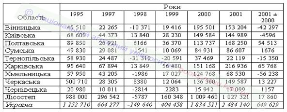 Якщо розглядати динаміку прибутків (збитків) від реалізації рослинницької продукції, то потрібно підкреслити, що за 1995-2001 роки в Лісостепу має місце зростання загальної суми прибутку на 39 321 тис. грн., або на 4 %, тоді як спостерігається її зменшення відповідно на 36 811 тис. грн. (62,5 %) у Тернопільській і на 3881 тис. грн. (18,5 %) у Чернівецькій областях. Найбільше зріс прибуток у сільськогосподарських підприємствах Вінницької області – на 107 694 тис. грн., або на 236,6 %. Хоча необхідно наголосити, що за результатами реалізації рослинницької продукції 2001 рік поступався 2000-му у Вінницькій області (на 42 297 тис. грн.) й особливо у Хмельницькій (на 56 238 тис. грн.), тимчасом як у Харківській області прибуток від реалізації рослинницької продукції в 2001 році був більшим на 65 768 тис. грн., або на 43,5 %. У цілому ж спостерігається зростання маси прибутку від рослинництва і в державі, яке становило 1 331 430 млн. грн., або 115,5 %. Серед областей лісостепової зони варто виділити й ті, які мали прибуток від рослинництва навіть у несприятливому 1998 році, тоді коли воно в зоні й у цілому по країні було збитковим. Це, Київська, Полтавська, Харківська і Черкаська області.
