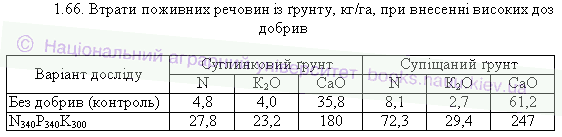 1.66. Втрати поживних речовин із ґрунту, кг/га, при внесенні високих доз добрив