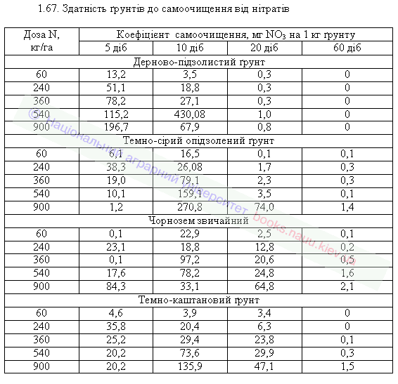 1.67. Здатність ґрунтів до самоочищення від нітратів
